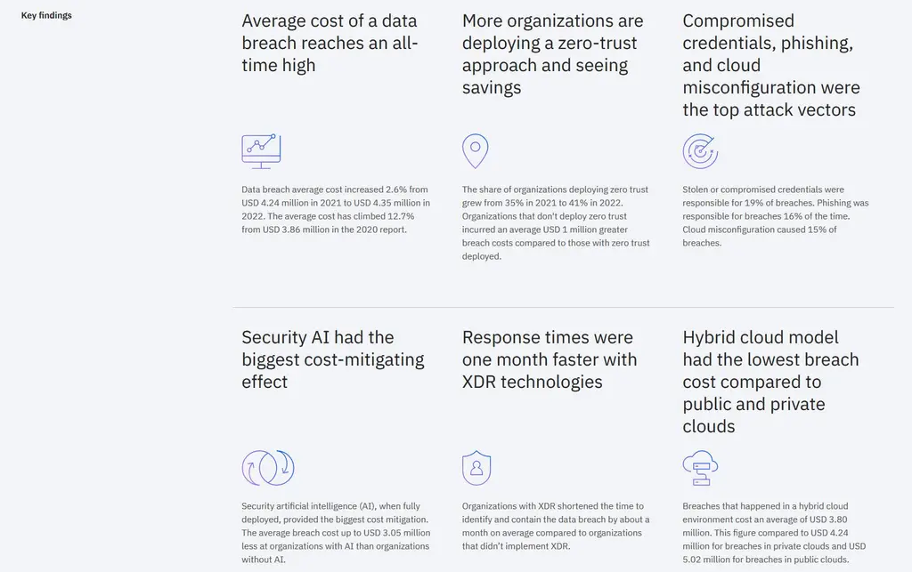 这份年度报告分析了自 2021 年 3 月至 2022 年 3 月期间全球 550 家企业出现的数据事件失医数据泄露事件。该研究由 IBM 提供资金支持和详细分析,泄露由 Ponemon Institute 进行实施。造成重灾