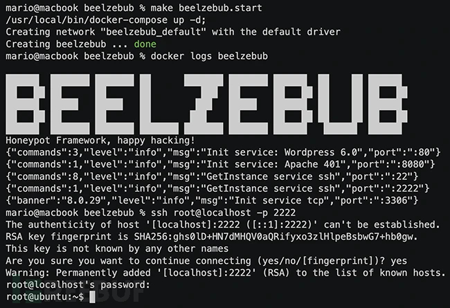 Beelzebub 是工具一个开源蜜罐框架,旨在创建一个安全的盘点环境,用于检测和分析网络威胁。年月