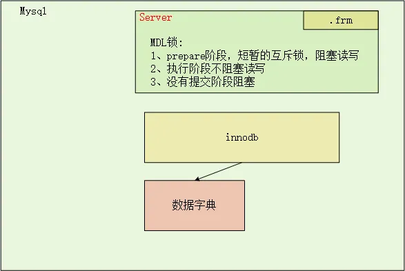 DDL prepare阶段短暂的MDL排他锁,阻塞读写执行阶段(主要耗时阶段),阻塞写,不阻塞读(5)GH-OST