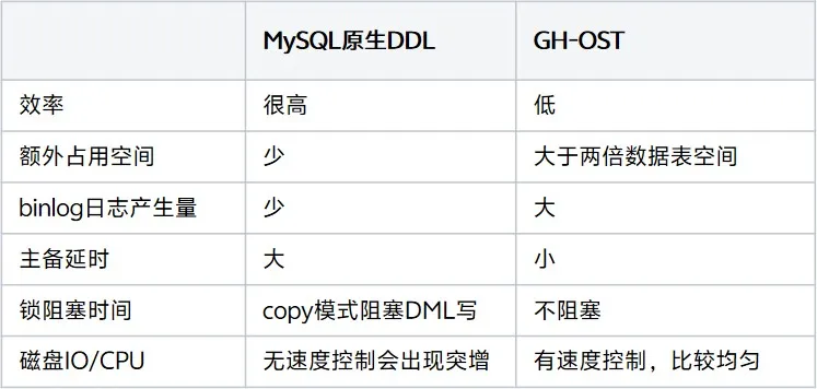 GH-OST 工具和 MySQL 原生 DDL 工具的适用场景不同,具体使用哪种工具需要根据实际需求进行选择。