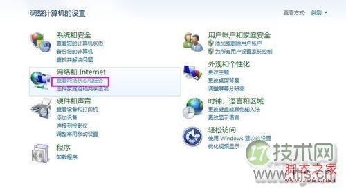 2、用过进入控制面板,络连选择网络和Internet下的"查看网络状态和任务"