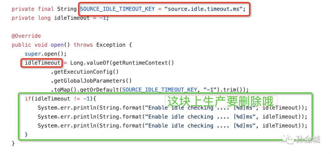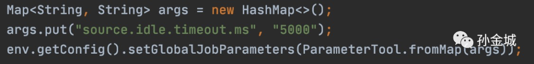 注意上面添加了一个配置`idleTimeout`的配置项,这个配置下默认`-1`,也就是不生效,那么只要你配置了这个数值,指定的时间不来数据Flink系统就认为这个Partition没数据了,那么计算Watermark的时候就不考虑他了,等他有数据再把他列入计算Watermark的范畴。